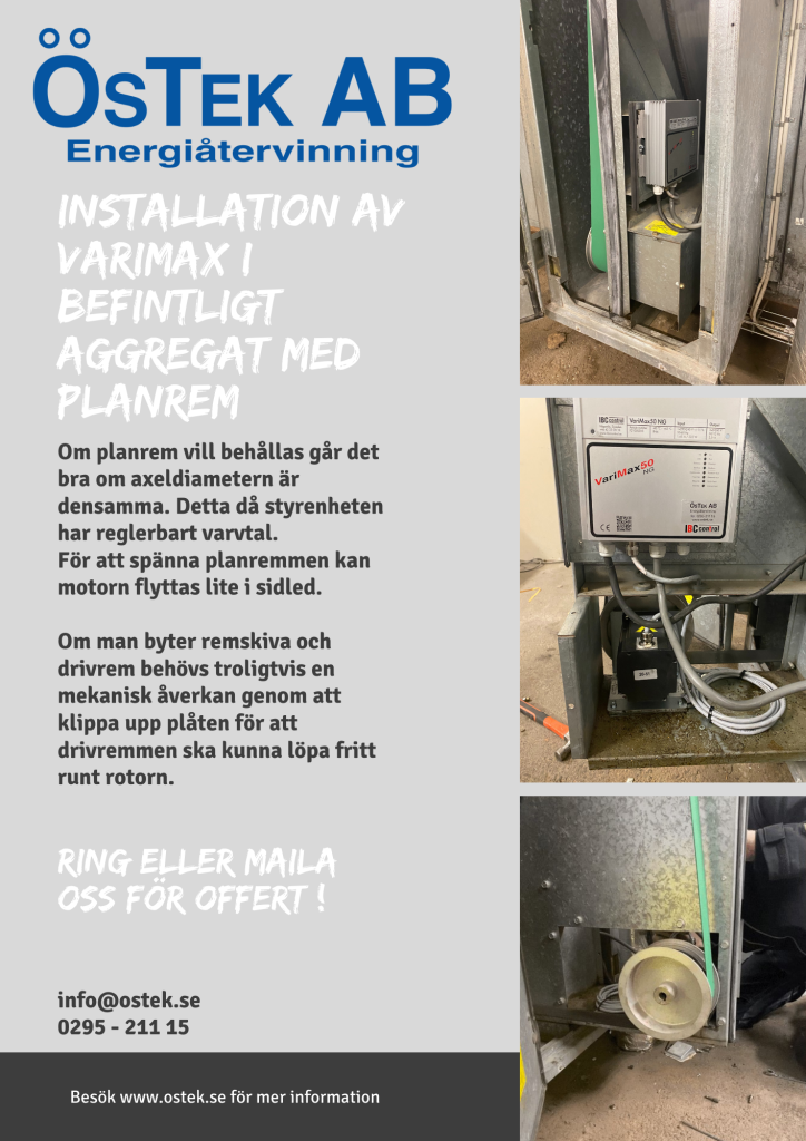 VariMax kan enkelt installeras i befintliga aggregat med planrem, vilket gör det till en smidig uppgradering utan att behöva bygga om hela systemet.